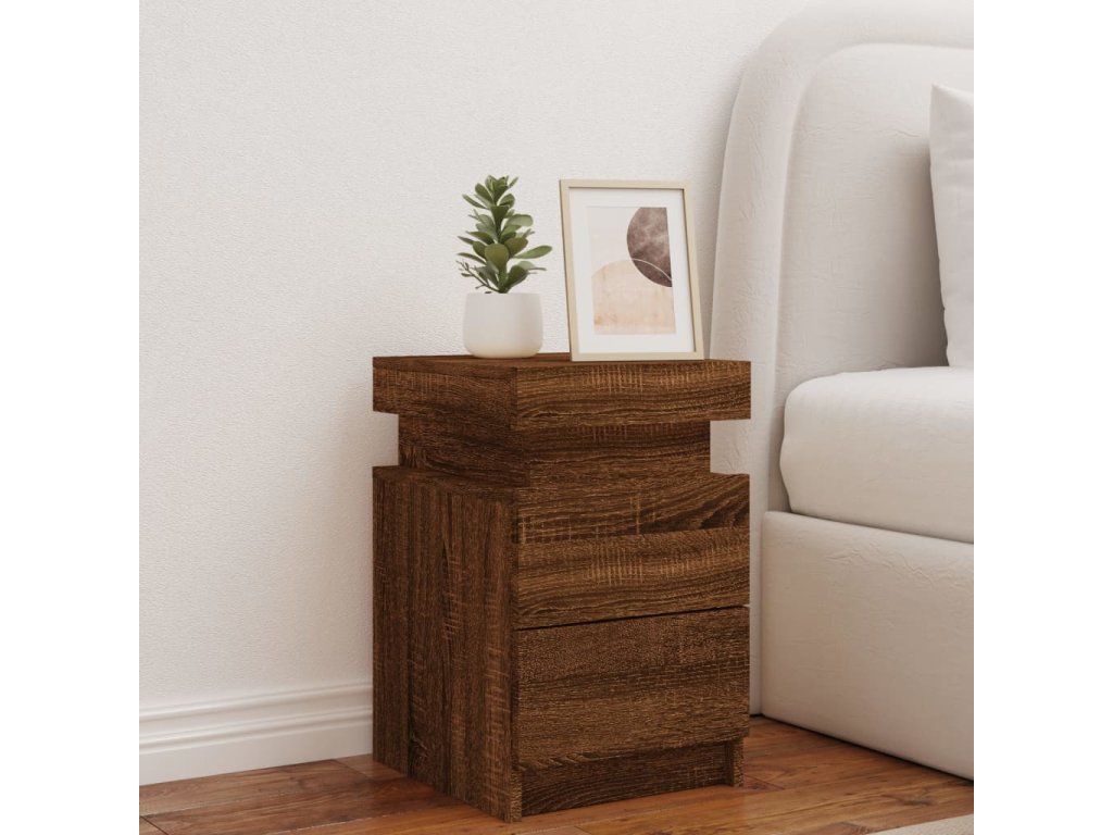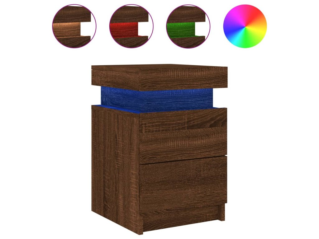 Noční stolek s LED osvětlením hnědý dub 35 x 39 x 55 cm