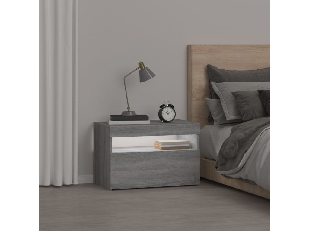 Noční stolek s LED osvětlením šedý sonoma 60 x 35 x 40 cm