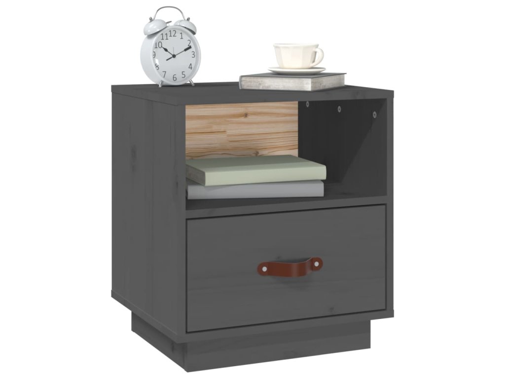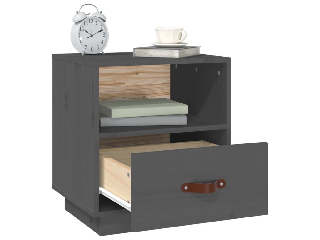 Noční stolek šedý 40 x 34 x 45 cm masivní borové dřevo