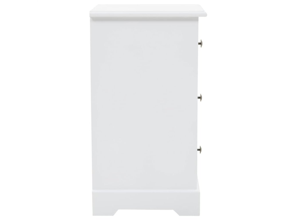 Noční stolek je vyroben z MDF a jeho zásuvky jsou ozdobeny kovovými úchytkami. Disponuje 3 zásuvkami, které vám nabídnou spoustu úložného prostoru, kde můžete přehledně uchovávat menší předměty tak, abyste je měli stále po ruce. Na horní desku skříňky můžete navíc postavit svůj budík, osvěžující sklenici vody anebo dekorativní předměty, jako jsou zarámované fotografie.