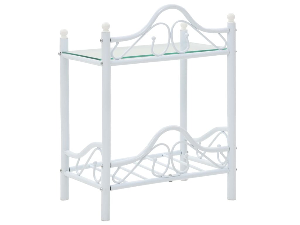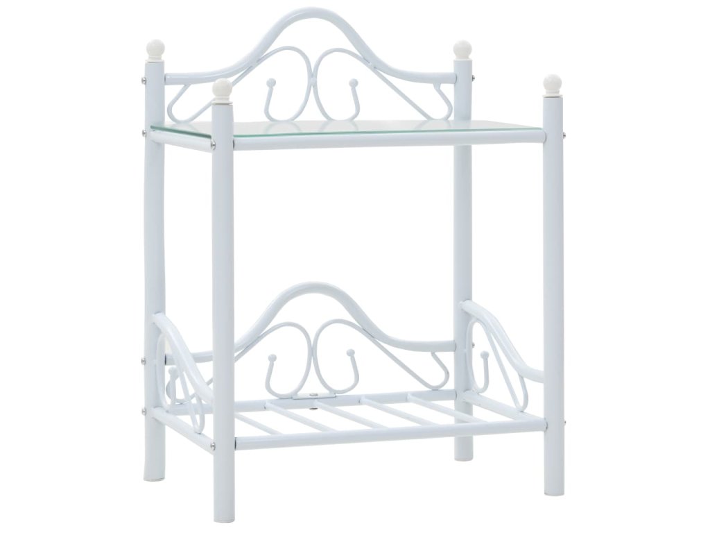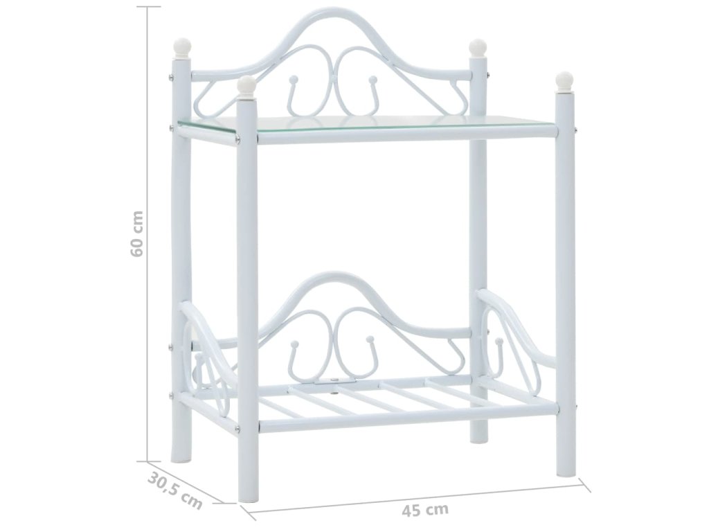 Noční stolek z oceli a tvrzeného skla 45 x 30,5 x 60 cm bílý
