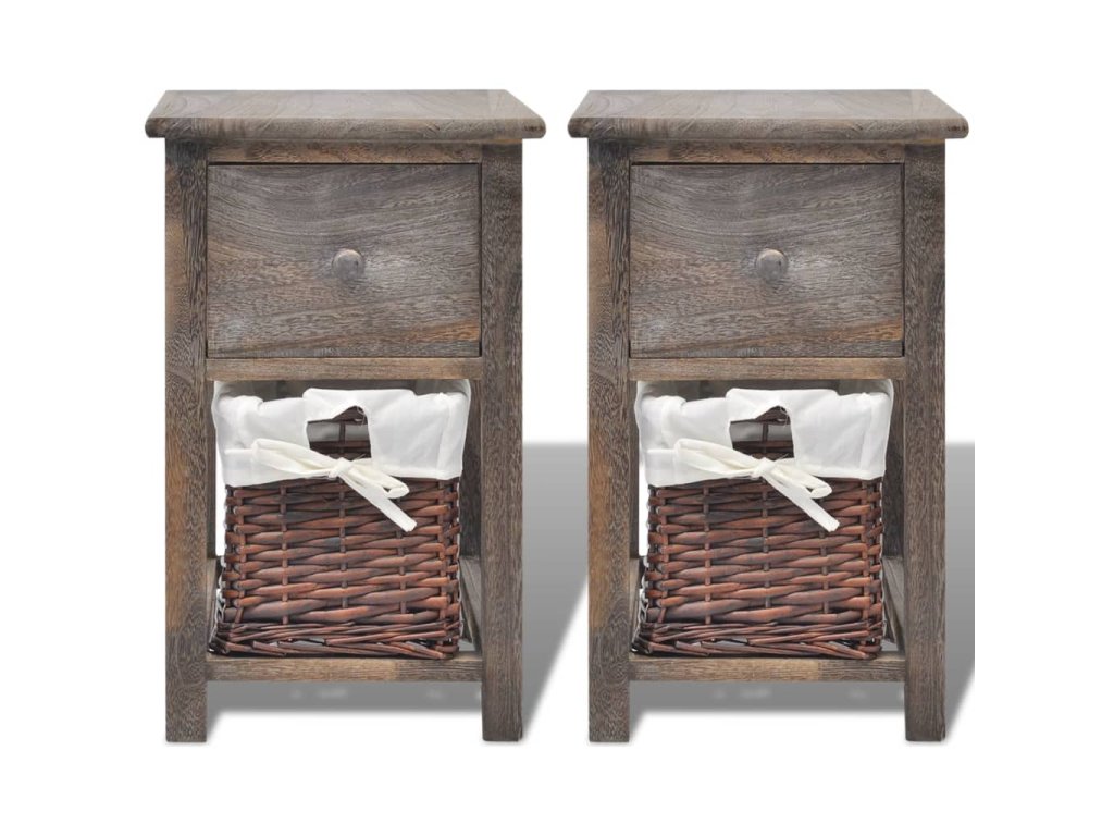 Vneste do svého domova trochu rustikálního půvabu s těmito šik nočními stolky! Stolky můžete používat také jako telefonní stolky, odkládací stolky, úložné skříňky, komody, noční stolky, stolky ke gauči apod.