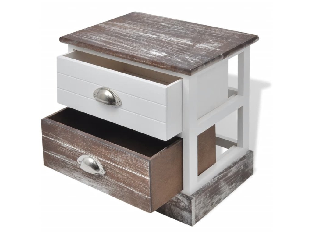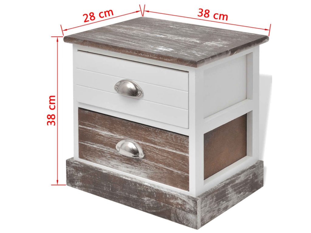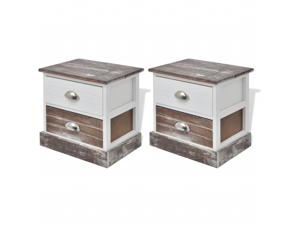 Tyto kompaktní noční stolky mají vintage vzhled. Každý stolek má 2 hladce vysouvatelné šuplíky, které poskytují dostatek místa na vaše drobnosti, abyste je měli uspořádané a po ruce. Protože jsou vyrobené z vysoce kvalitních materiálů, jsou tyto stolky odolné a snadno se čistí.