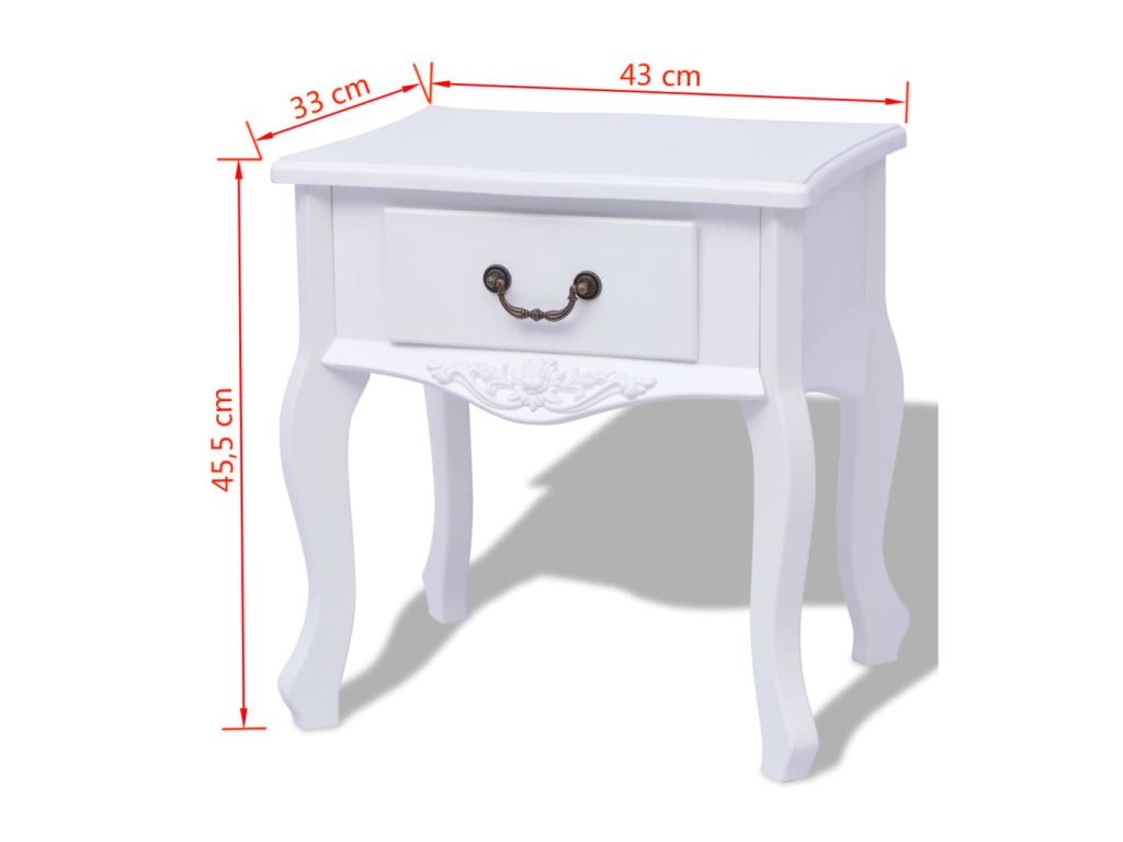 Každý z těchto kompaktních nočních stolků má hladce vysouvatelný šuplík, který poskytuje dostatek místa na vaše drobnosti, abyste je měli uspořádané a po ruce. Protože jsou vyrobené z vysoce kvalitního MDF, jsou tyto stolky odolné a snadno se čistí.