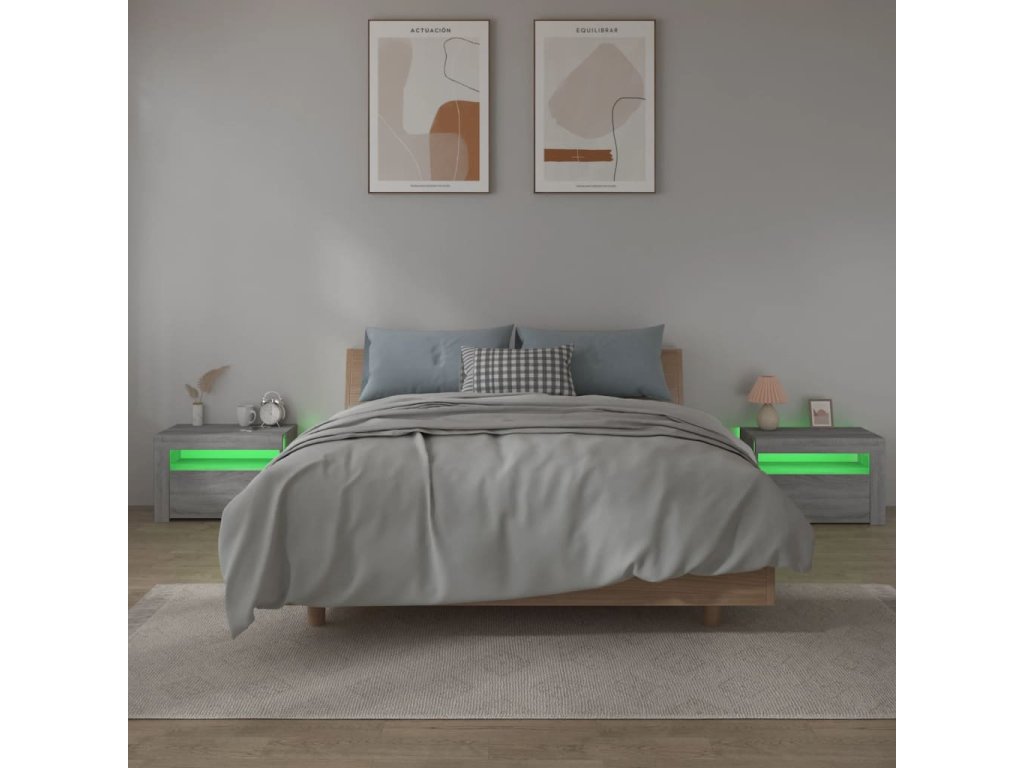 Noční stolky 2 ks s LED osvětlením šedé sonoma 60 x 35 x 40 cm