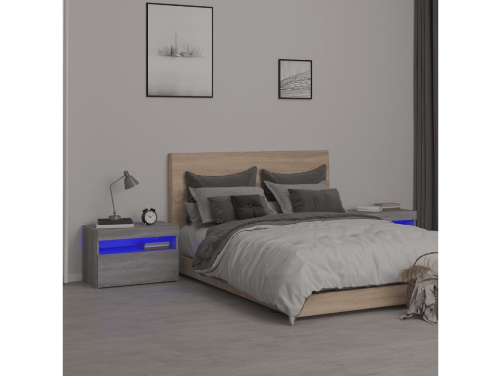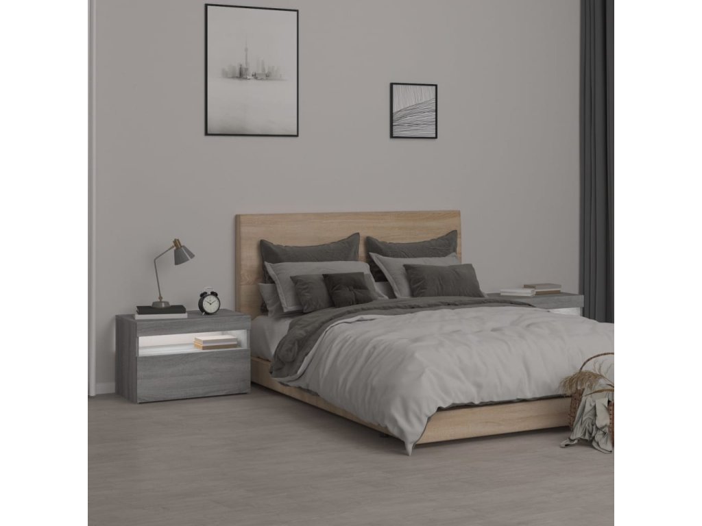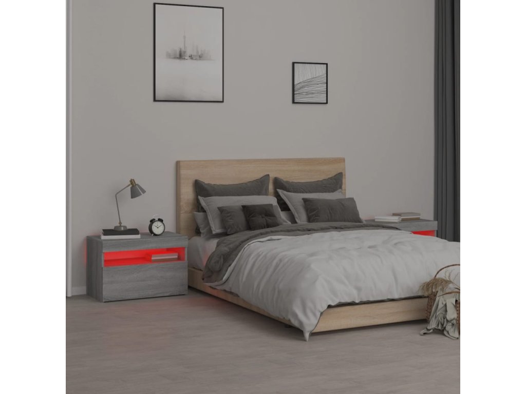 Noční stolky 2 ks s LED osvětlením šedé sonoma 60 x 35 x 40 cm