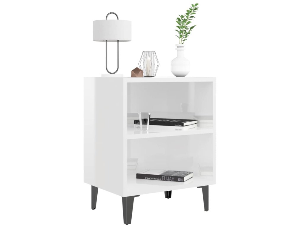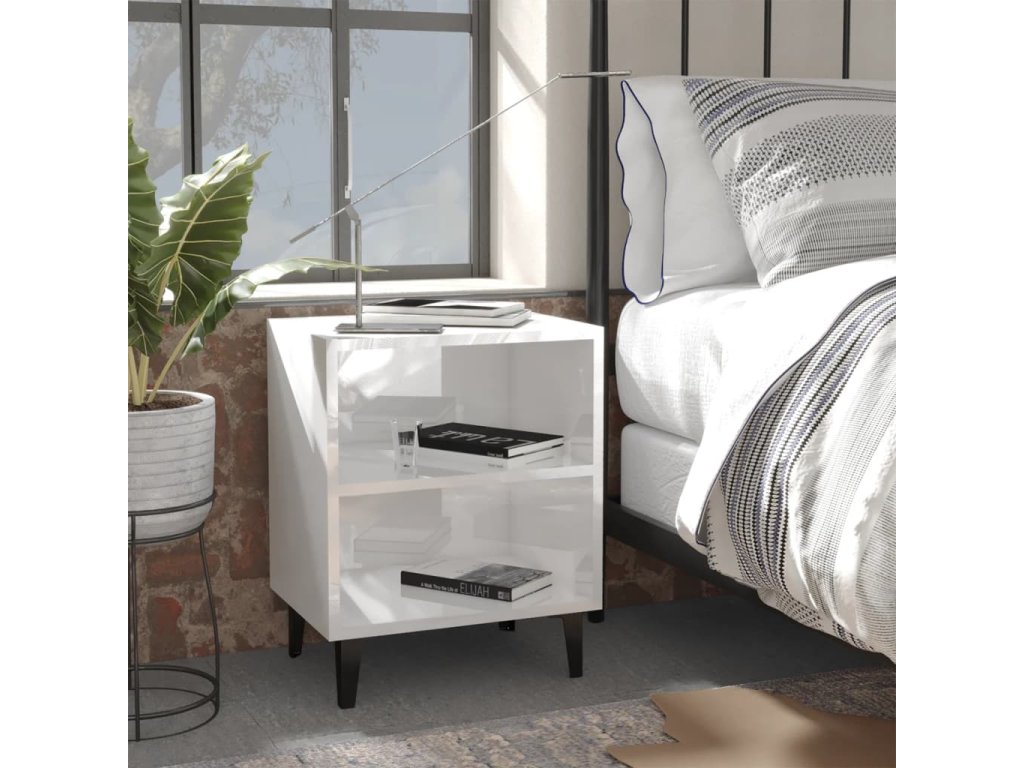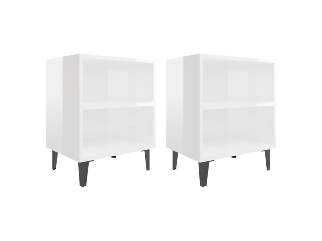 Noční stolky s kovovými nohami 2 ks lesklé bílé 40 x 30 x 50 cm
