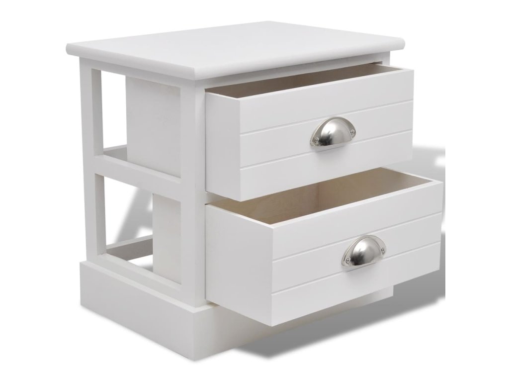 Každý z těchto kompaktních nočních stolků má 2 hladce vysouvatelné šuplíky, které poskytují dostatek místa na vaše drobnosti, abyste je měli uspořádané a po ruce. Protože jsou vyrobené z vysoce kvalitních materiálů, jsou tyto stolky odolné a snadno se čistí.