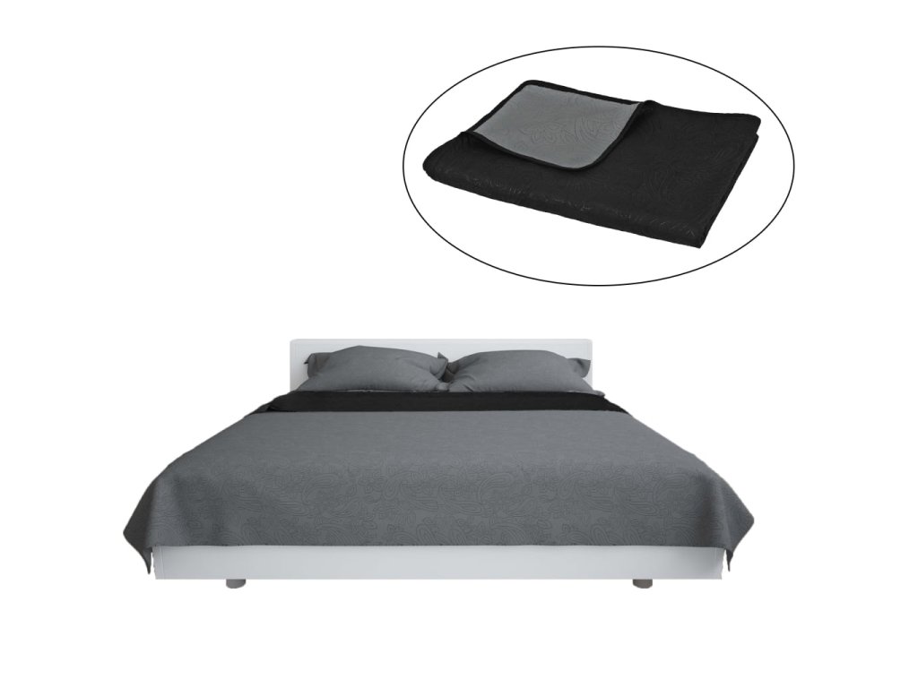 Oboustranný prošívaný přehoz na postel 170 x 210 cm šedo-černý