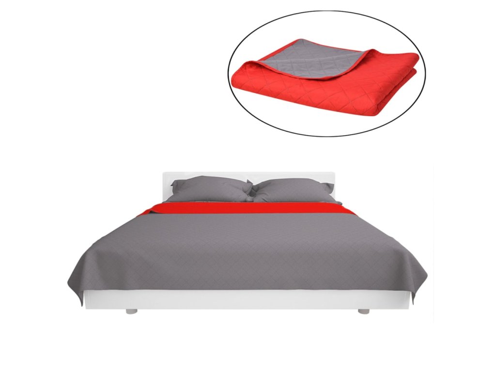Oboustranný prošívaný přehoz na postel červeno-šedý 220x240 cm