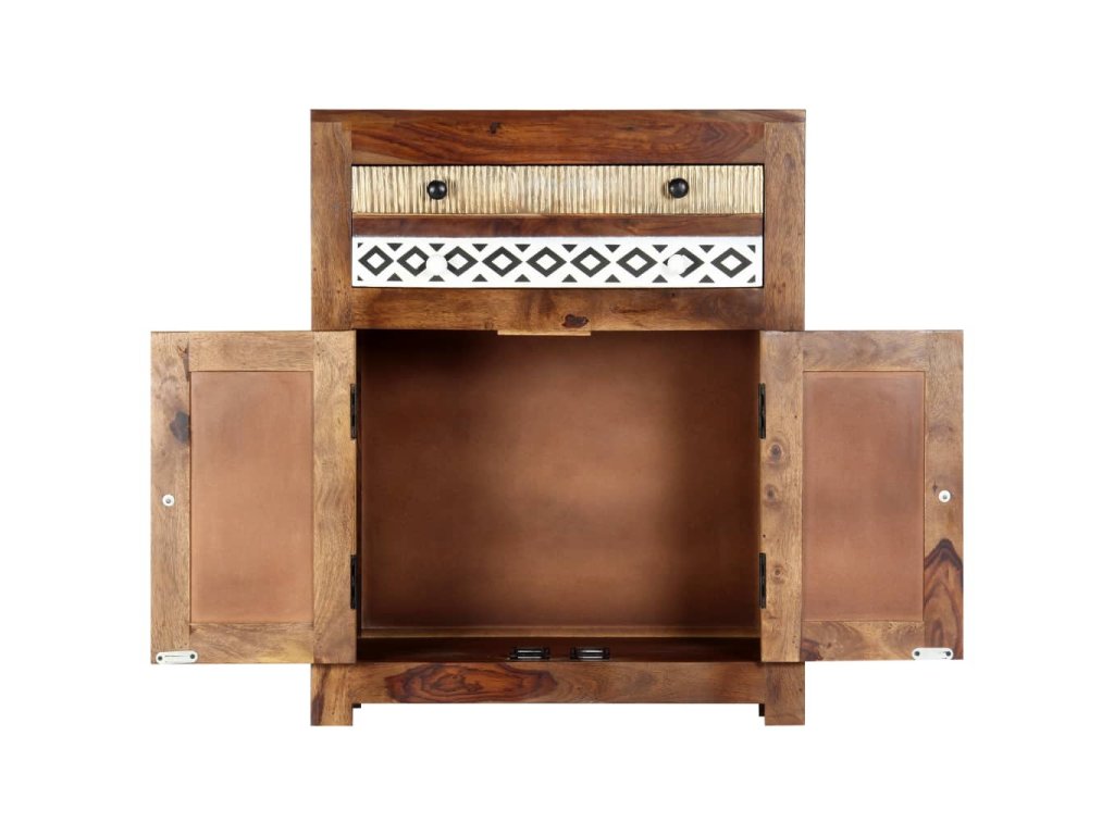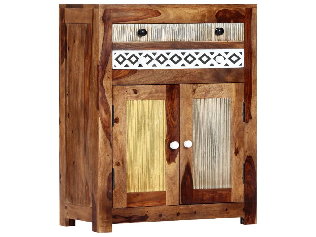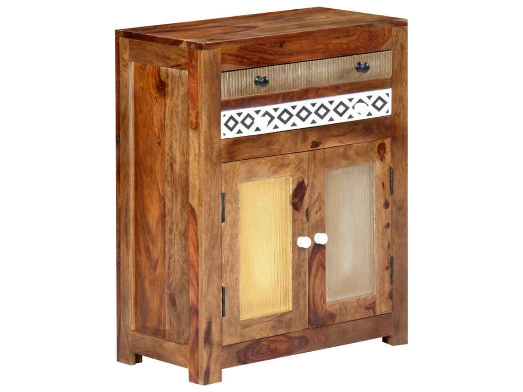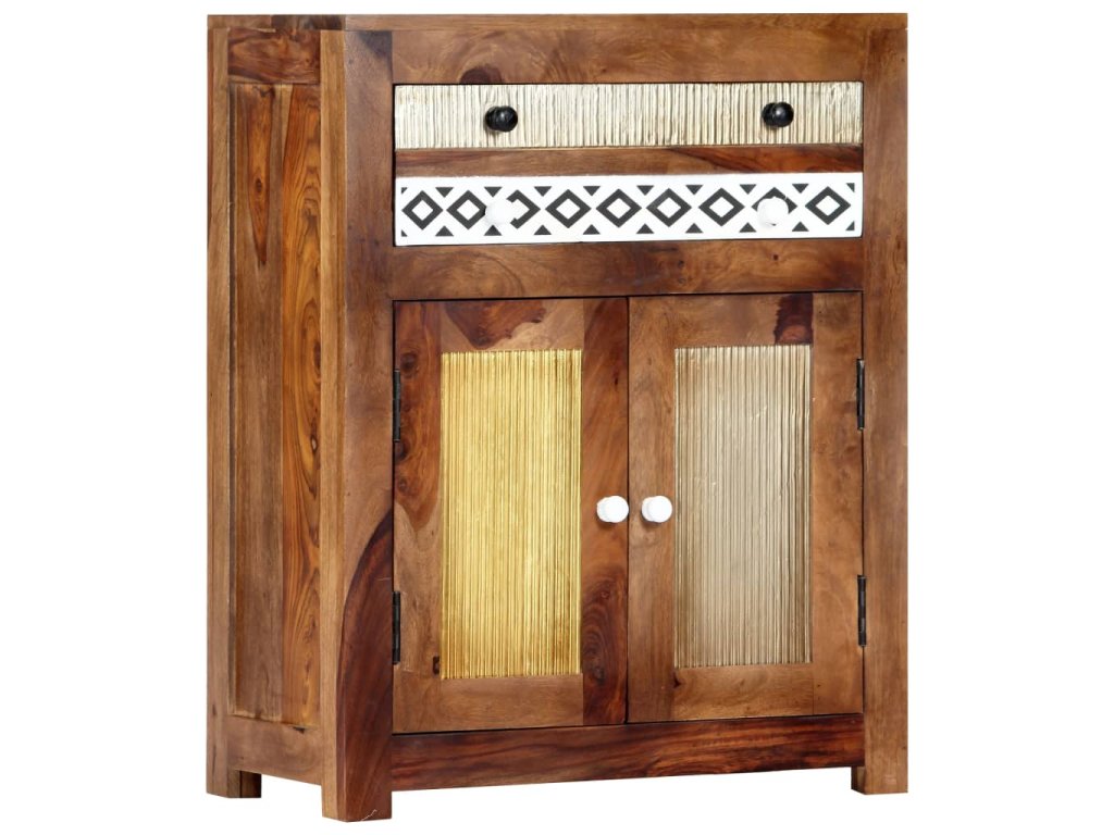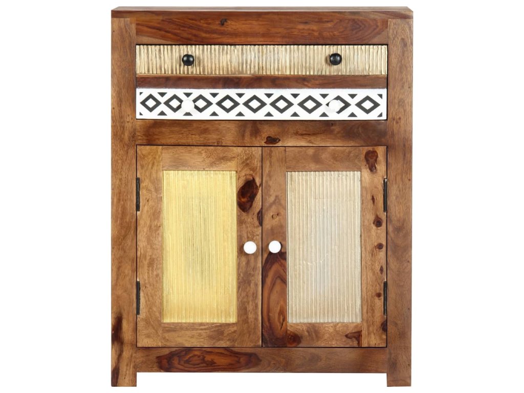 Tento příborník je vyroben z masivního akáciového dřeva a byl naleštěn, natřen a nalakován, čemuž vděčí za svůj půvabný a rafinovaný vzhled. Akácie, známý také jako rosewood nebo palisandr, je tropické tvrdé dřevo, které je oceňované pro svou bohatou kresbu. Zručné řemeslné zpracování a krásná kresba dřeva propůjčuje každému kusu nábytku jeho jedinečný a od všech ostatních lehce odlišný vzhled. Dvě zásuvky a jedna úložná přihrádka s dvířky poskytují dostatek úložného prostoru pro přehledné uschování vašich drobností, které tak budete mít neustále po ruce. Sestavení dřevěné skříňky je jednoduché a k jejímu čištění vám postačí navlhčený hadřík. Povzneste svůj interiér na zcela novou úroveň s tímto elegantním prádelníkem!