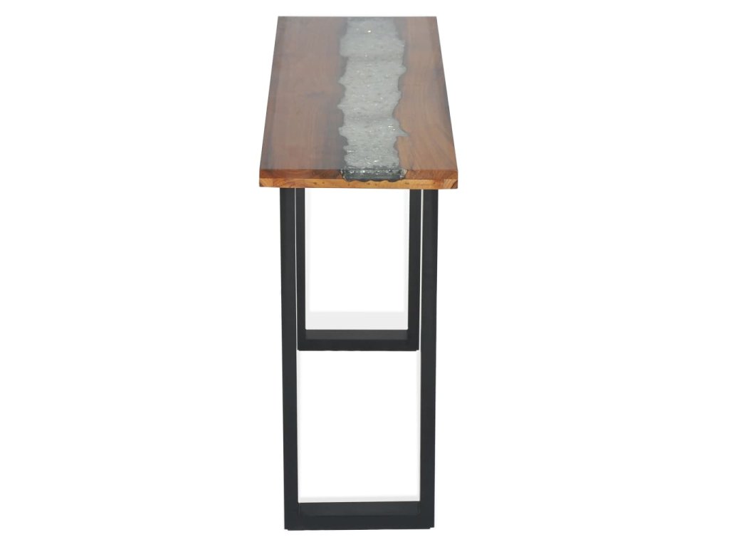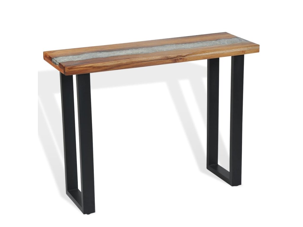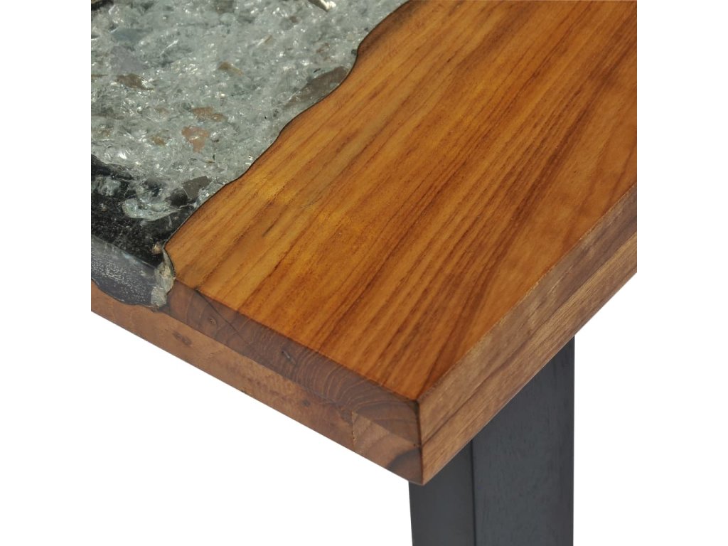 Deska stolu je vyrobena z pravého teaku. Jde o pevný, stabilní povrch, na který si můžete odložit nápoje, vázy, mísy s ovocem či dekorace. Navíc se pyšní dekorativní výplní ze skla a pryskyřice, která stolku dodává jeho nevšední vzhled. Pevné mahagonové nohy mu naopak propůjčují odolnost a stabilitu. Jeho montáž je velmi snadná.