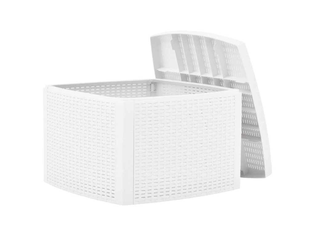 Zahradní stolek je vyrobený z klimaticky odolného a bezúdržbového polypropylenu. Má ratanový vzhled a stylový dekor. Stolek můžete využívat venku každý den a bez obav, že by jeho barva vybledla nebo že by začal rezivět, hnít nebo se loupat. Stolek má těž praktickou přihrádku pro potřeby, které si přejete mít během odpočinku na zahradě po ruce.