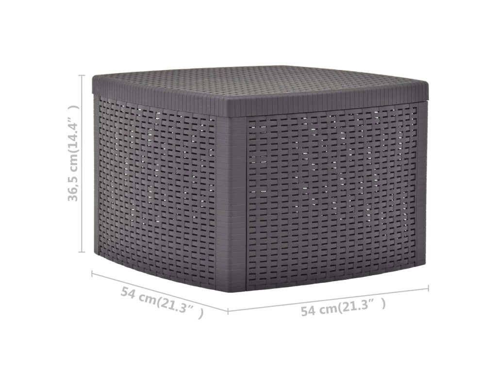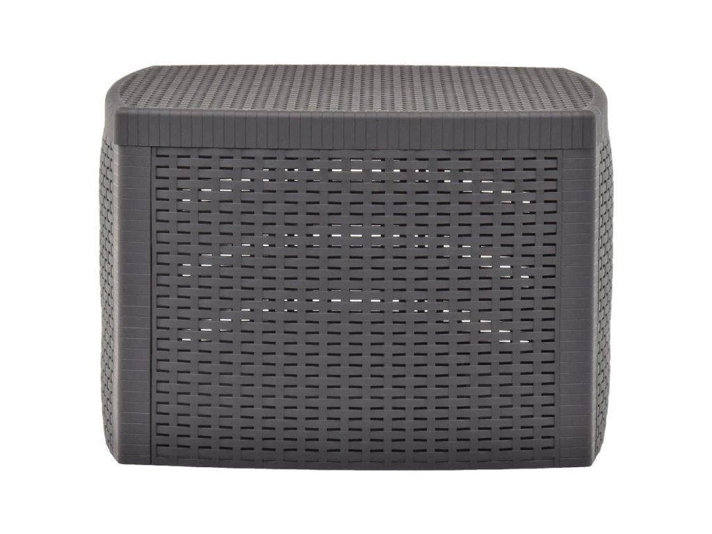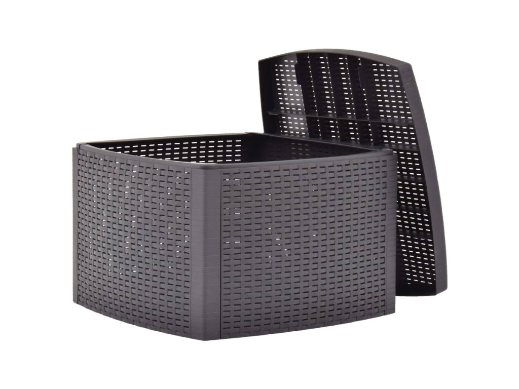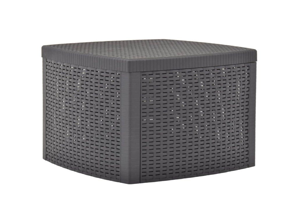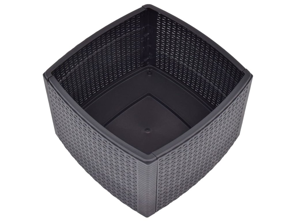Zahradní stolek je vyrobený z klimaticky odolného a bezúdržbového polypropylenu. Má ratanový vzhled a stylový dekor. Stolek můžete využívat venku každý den a bez obav, že by jeho barva vybledla nebo že by začal rezivět, hnít nebo se loupat. Stolek má těž praktickou přihrádku pro potřeby, které si přejete mít během odpočinku na zahradě po ruce.