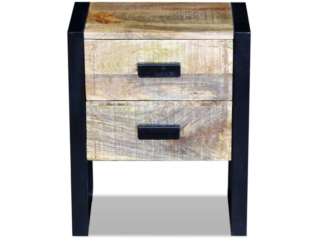 Tento stolek je vyroben z masivního mangovníkového dřeva, takže je bytelný, stabilní a odolný. Jeho dvě zásuvky poskytují dostatek úložného prostoru a krychlové železné nohy mu dodávají jak industriální vzhled, tak stabilitu. Díky viditelné struktuře dřeva je každý kus nábytku jedinečný a lehce se odlišuje od všech ostatních.