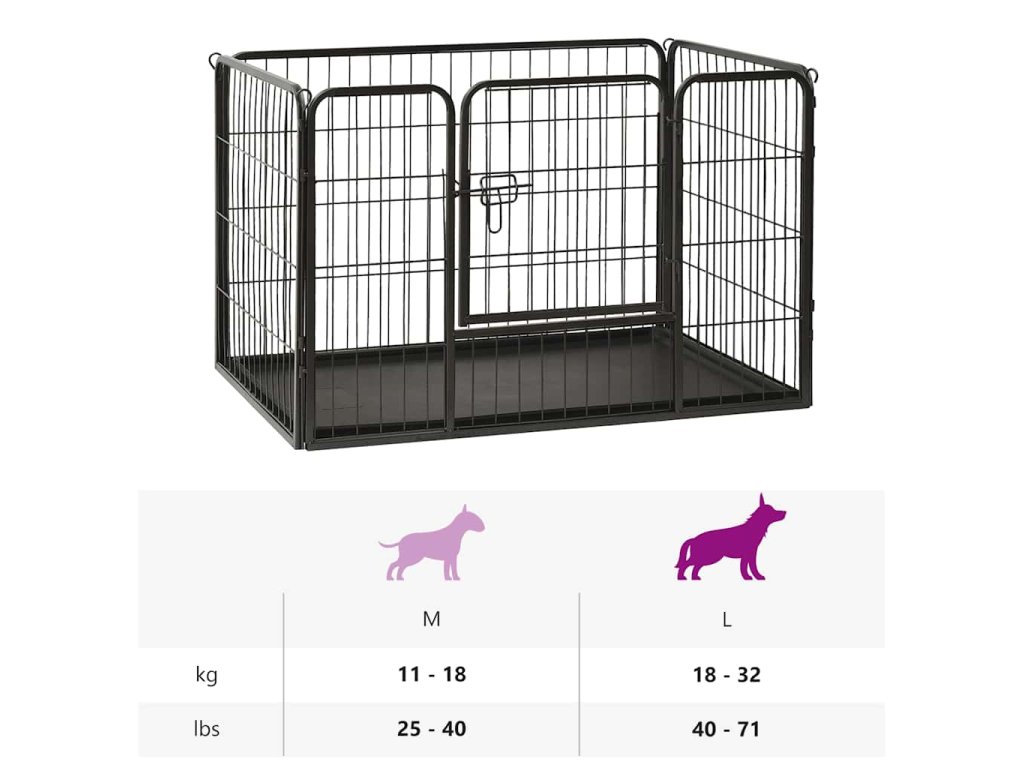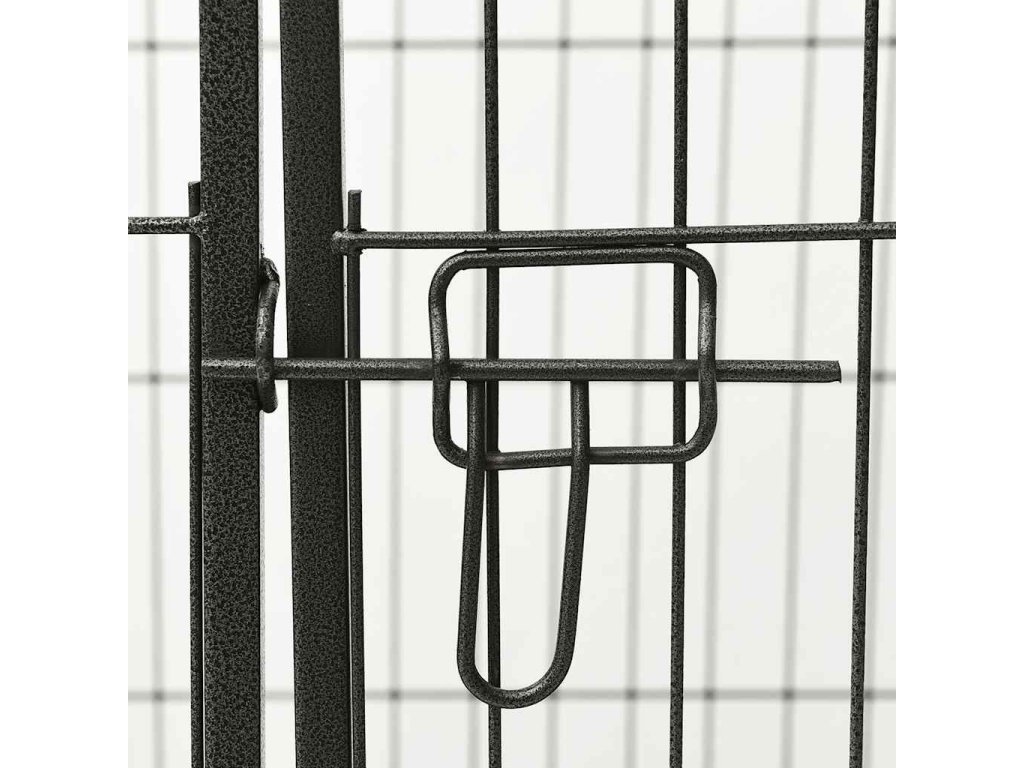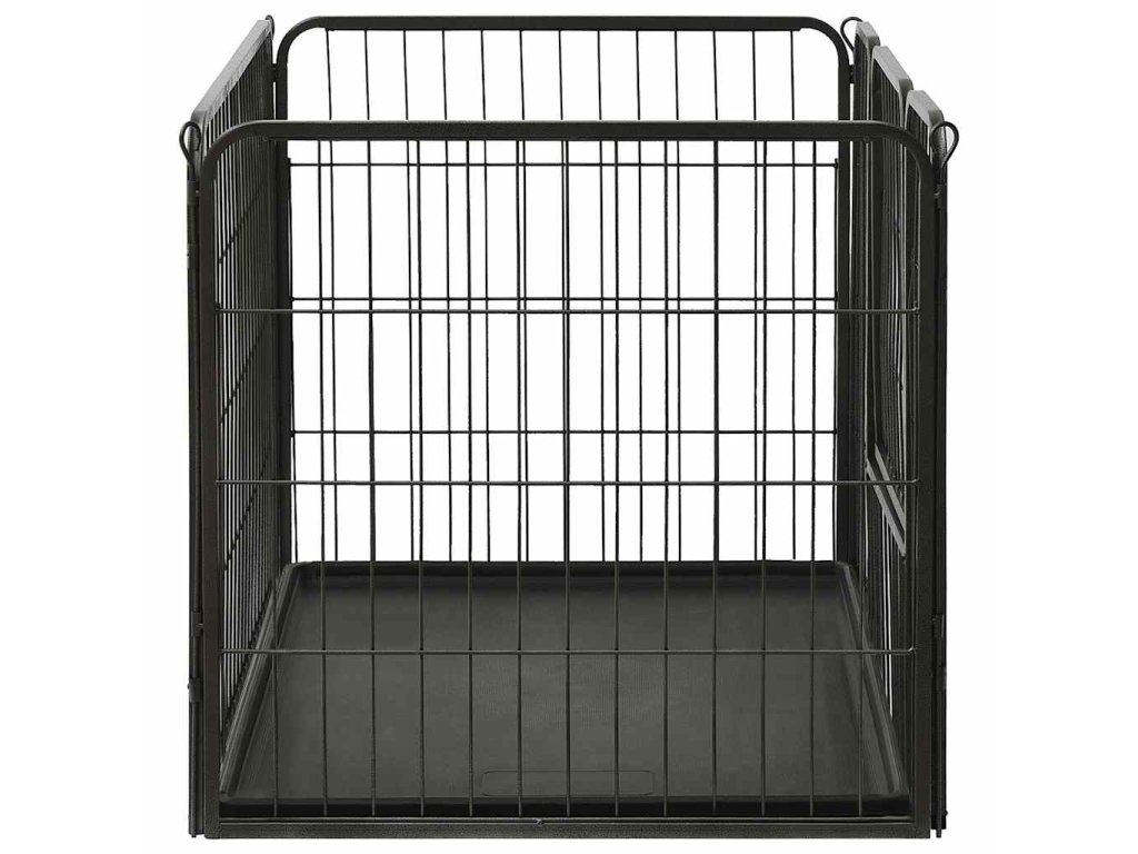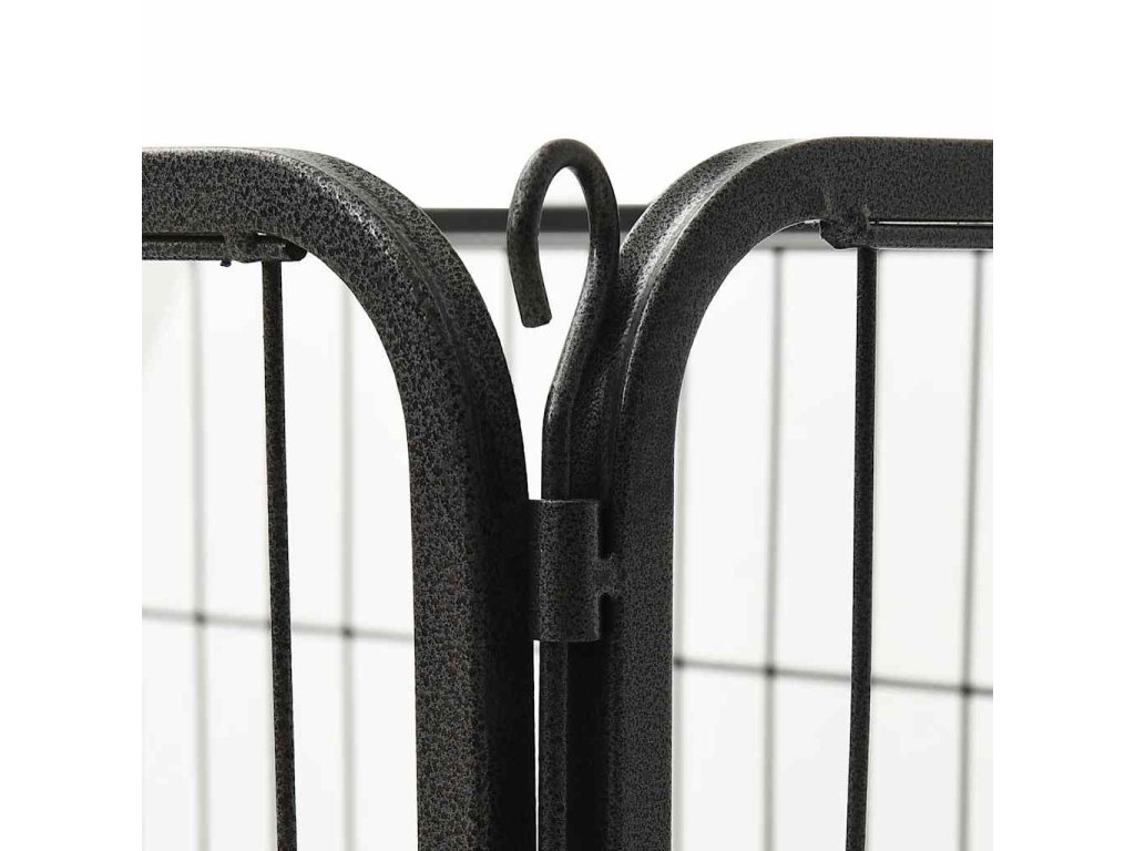 Tuto ohrádku pro psy lze snadno sestavit a rozložit. Disponuje závěsnými dvířky s bezpečnostní západkou, která umožňují snadný přístup. Ohrádka je pevná, odolná vůči povětrnostním vlivům a vyrobená z nerezové oceli s práškovým nástřikem, takže je vhodná pro venkovní i vnitřní použití. Součástí balení je i spodní plastové dno.