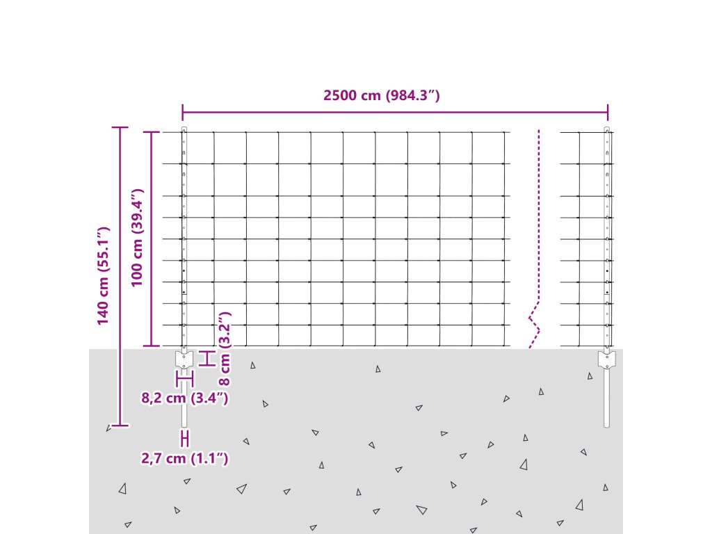 - Celkové rozměry: 2500 x 2,7 x 100 cm (D x Š x V)