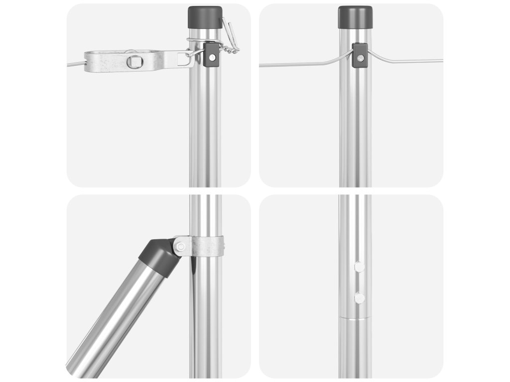 - Přiložené komponenty: Montáž sloupku je jednoduchá, protože potřebujete minimální počet dílů. Stačí přesně vyrobené komponenty a kladivo, abyste sloupek zasadili do země. Skvěle se spojí s bránami a ploty, a poskytuje stabilitu a funkčnost.