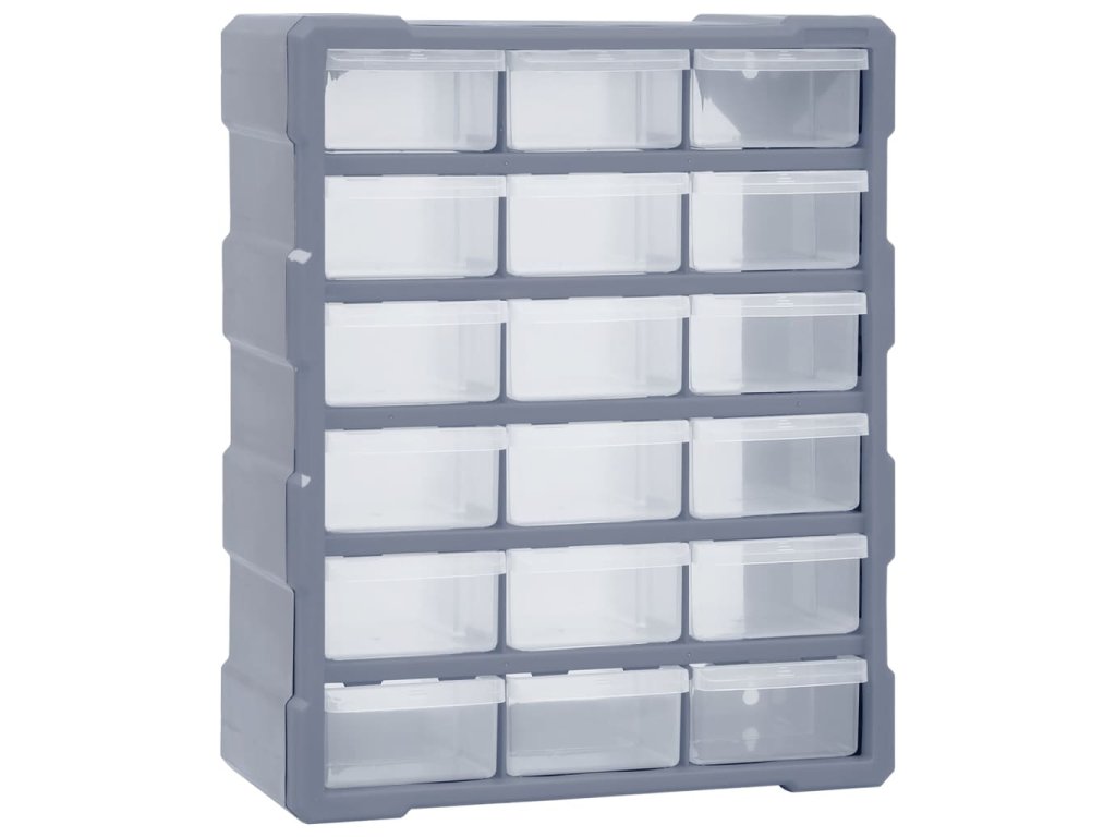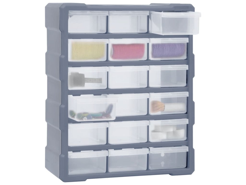 Tento nepostradatelný organizér obsahuje celkem 18 středně velkých zásuvek a je určený k přehlednému skladování celé řady věcí. Můžete ho použít i jako box na šití nebo na nehtovou kosmetiku.