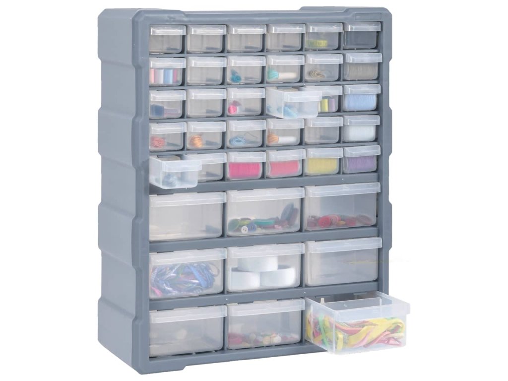 Tento nepostradatelný organizér obsahuje celkem 39 zásuvek a je určený k přehlednému skladování celé řady věcí. Můžete ho použít i jako box na šití nebo na nehtovou kosmetiku.