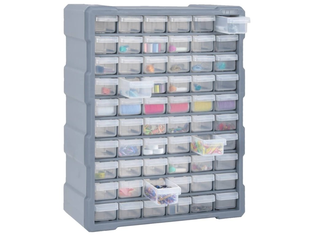 Tento nepostradatelný organizér obsahuje celkem 60 zásuvek a je určený k přehlednému skladování celé řady věcí. Můžete ho použít i jako box na šití nebo na nehtovou kosmetiku.