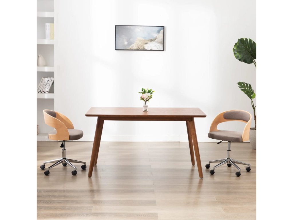 Otočná jídelní židle taupe ohýbané dřevo a textil