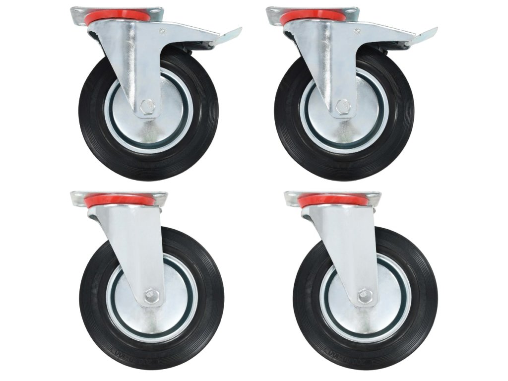 Kolečka jsou vyrobena z gumy, která je známá pro svou schopnost pohlcovat nárazy a vibrace. Ať už tedy kolečka namontujete na cokoliv, budete to moci přesouvat hladce a v tichosti. Jejich hladký povrch navíc ochrání vaši podlahu před poškrábáním. Zinkem potažený ocelový rám je odolný proti rzi, dodává kolečkům na odolnosti a prodlužuje jejich životnost. Dvě z těchto otočných koleček jsou vybavena dvojitou brzdou pro flexibilnější ovládání. Každé kolečko má maximální nosnost až 180 kg.