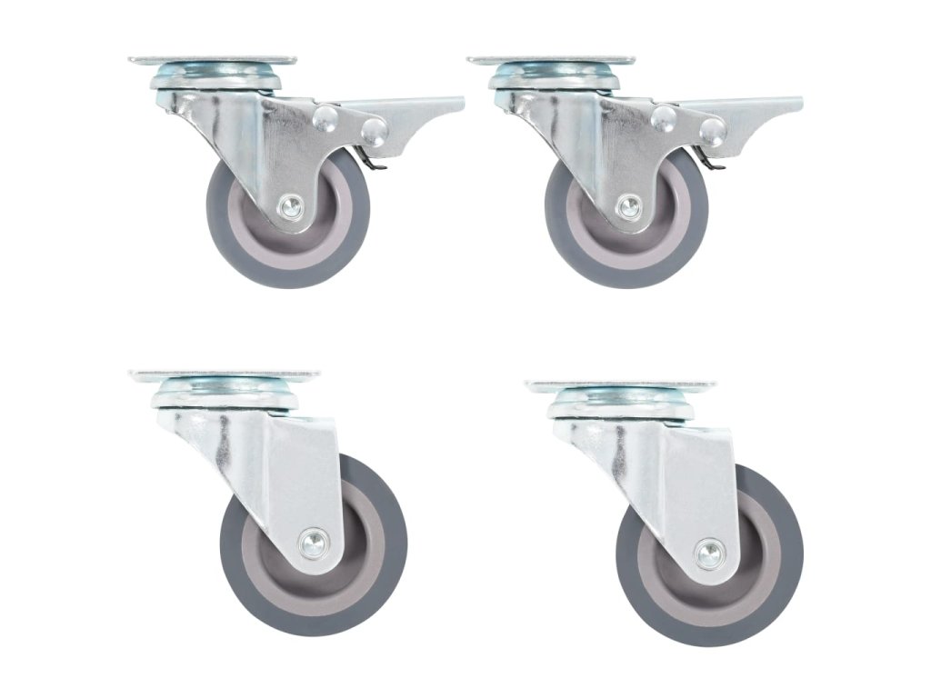 - Balení obsahuje 2 otočná kolečka a 2 otočná kolečka s dvojitou brzdou