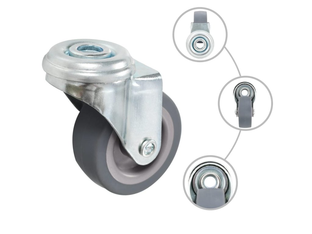 Tato sada 4 otočných koleček s otvorem pro šroub je skvělým doplňkem k menšímu vybavení a nábytku, jako jsou pracovní stoly, vozíky, konferenční stolky, stojany na květináče, knihovny, nákupní vozíky apod.