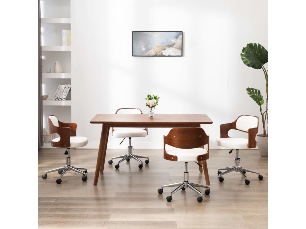 Otočné jídelní židle 4 ks bílé ohýbané dřevo a umělá kůže