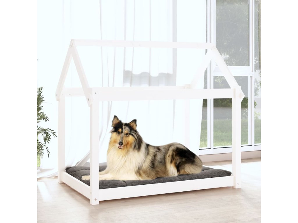 Pelíšek pro psy bílý 101x70x90 cm masivní borovice