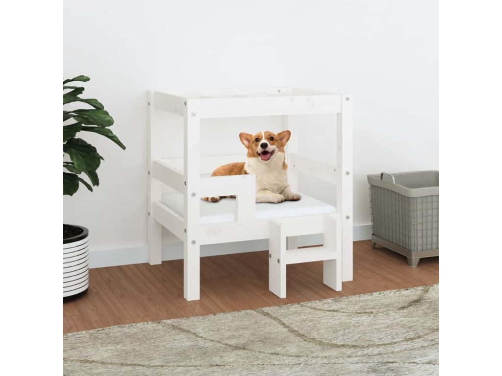 Pelíšek pro psy bílý 55,5 x 53,5 x 60 cm masivní borovice