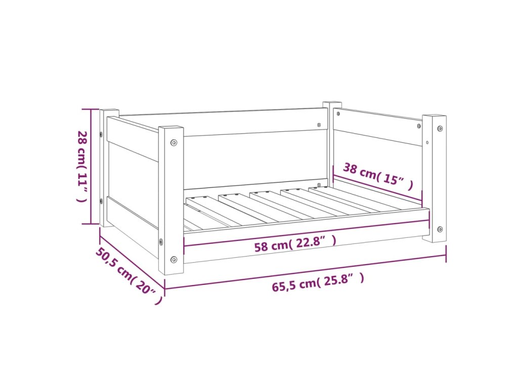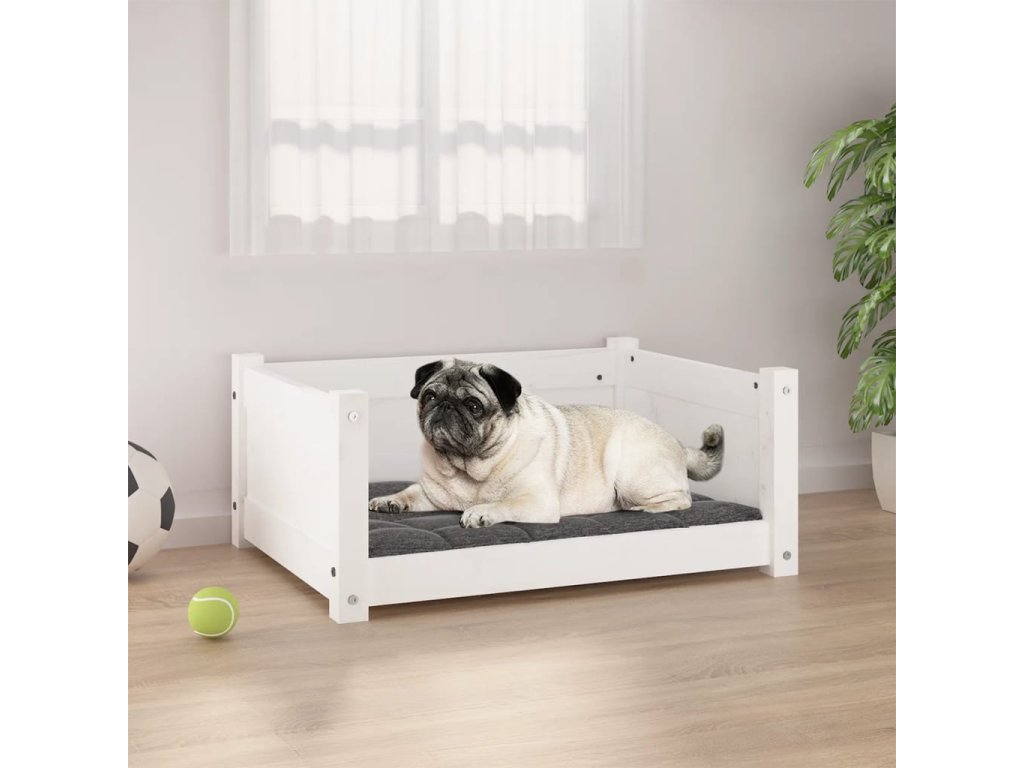 Pelíšek pro psy bílý 65,5 x 50,5 x 28 cm masivní borovicové dřevo