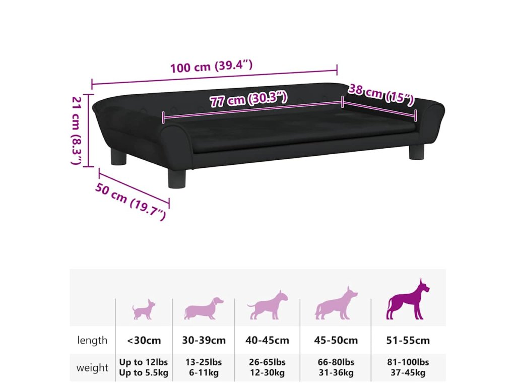 Pelíšek pro psy černý 100 x 50 x 21 cm samet