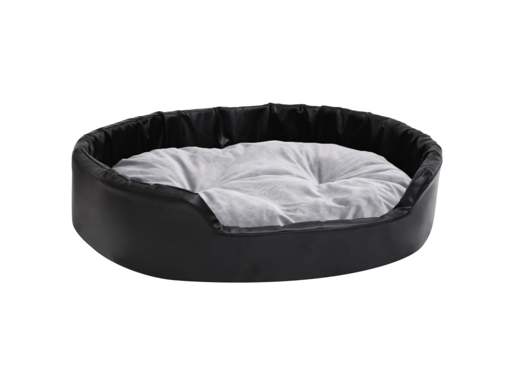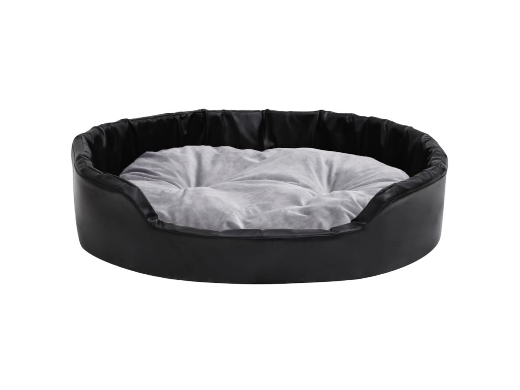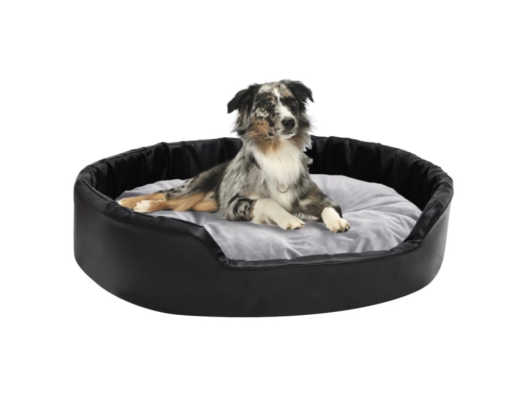 Pelíšek pro psy černý a šedý 90 x 79 x 20 cm plyš a umělá kůže