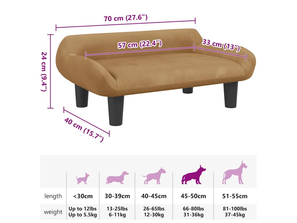 Pelíšek pro psy hnědý 70 x 40 x 24 cm samet