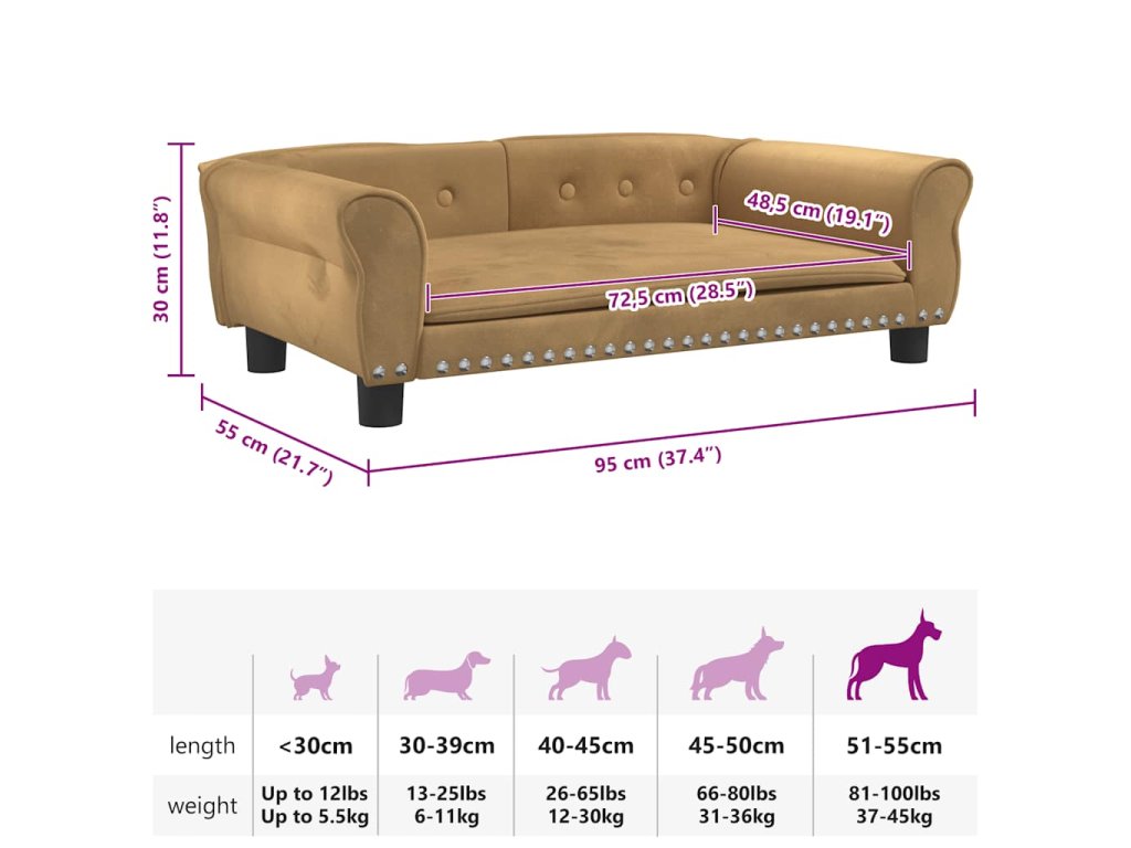 Pelíšek pro psy hnědý 95 x 55 x 30 cm samet