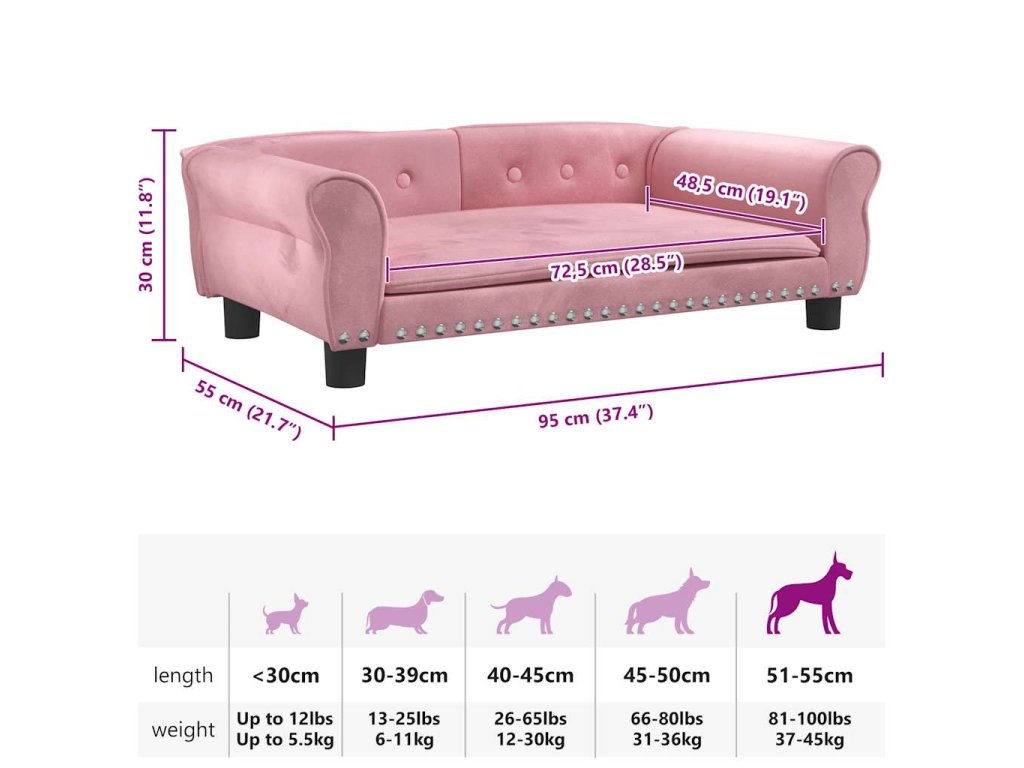 Pelíšek pro psy růžový 95 x 55 x 30 cm samet