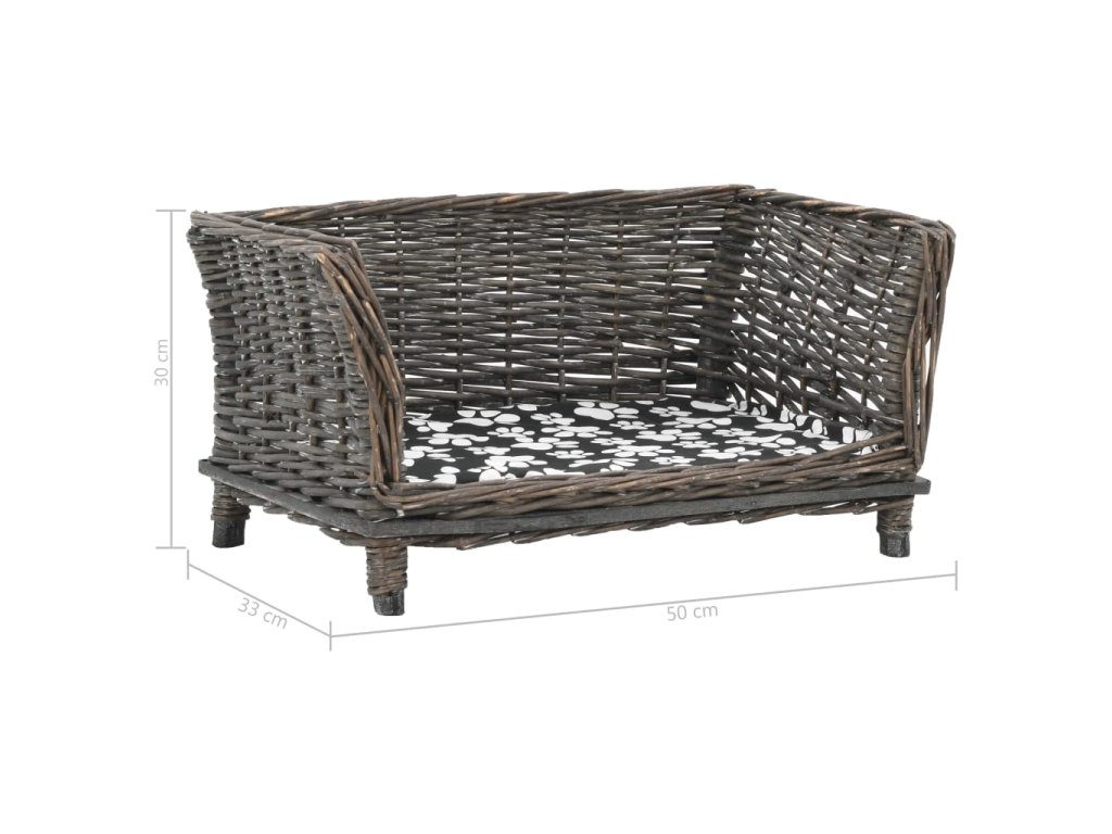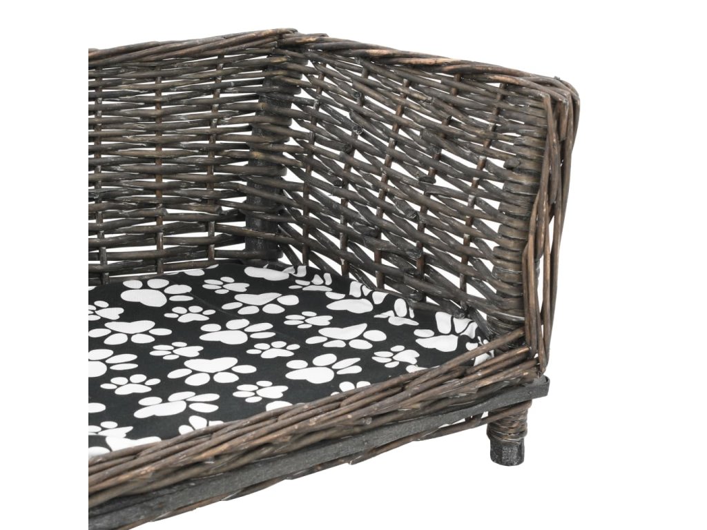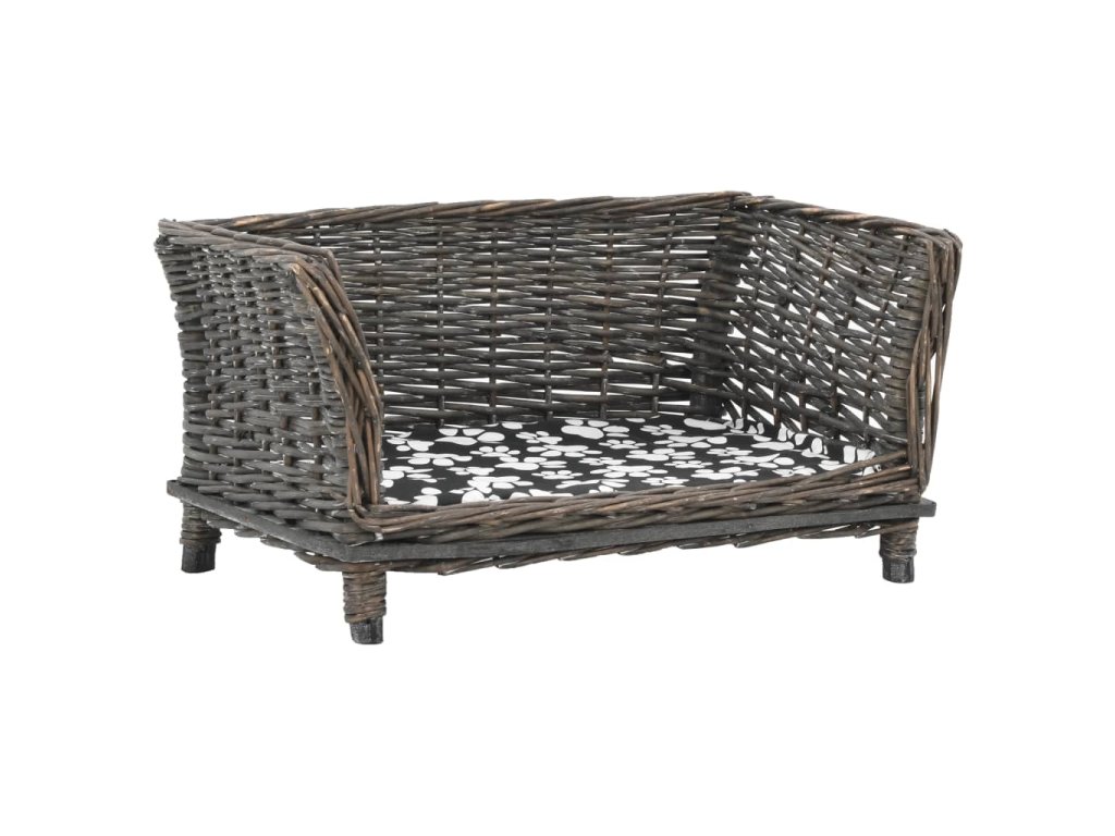 Pelíšek pro psy s poduškou šedý 50 x 33 x 30 cm přírodní vrba
