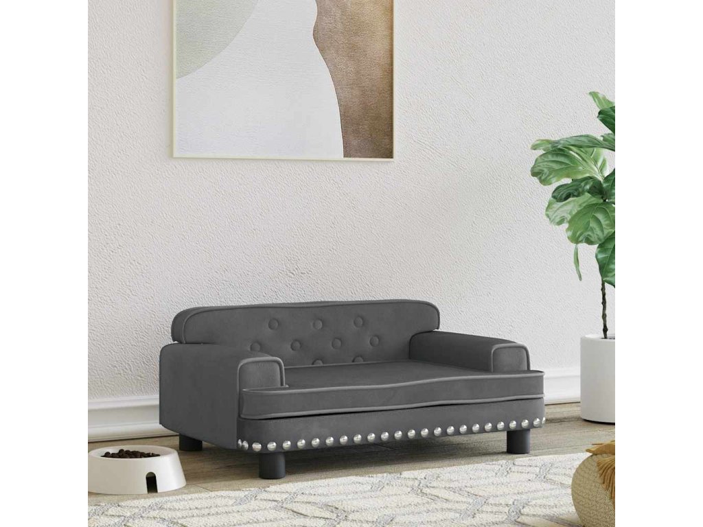 Pelíšek pro psy tmavě šedý 70 x 45 x 30 cm samet