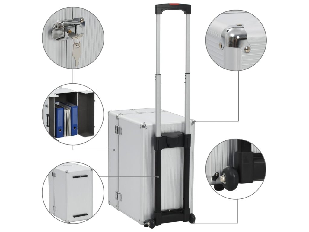 Kufr na kolečkách je vyrobený ze dřeva, ABS fólie a hliníku, je voděodolný a má dlouhou životnost. Disponuje jednou velkou přihrádkou pro snadné ukládání dokumentů, souborů a složek A4. Jelikož je opatřený 2 kolečky a 1 teleskopickou rukojetí, bude se vám s pilotním kufrem velice pohodlně cestovat. Nechybí mu ani vestavěný zámek se 2 klíčky, který se postará, že obsah kufru zůstane po celou cestu v bezpečí!
