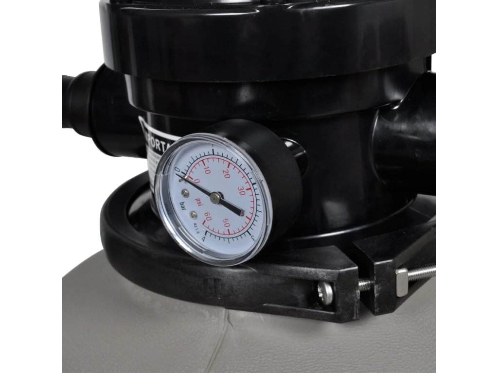 Pískový filtr dokáže přefiltrovat 11000 litrů za hodinu a je vybaven rezistentní a korozivzdornou filtrační nádrž, která je odolná vůči kyselému vlivu chlorované vody v bazénu. K dispozici je také předfiltr navíc, který chrání hrubý pískový filtr před znečištěním. Má vícecestný ventil pro snadné ovládání a snadno čitelný manometr. Konstrukce horní přírubové svorky umožňuje otáčení 360 stupňů pro snadnou instalaci. Pro bezpečné uchycení obsahuje tato sada upevnitelnou základnu.