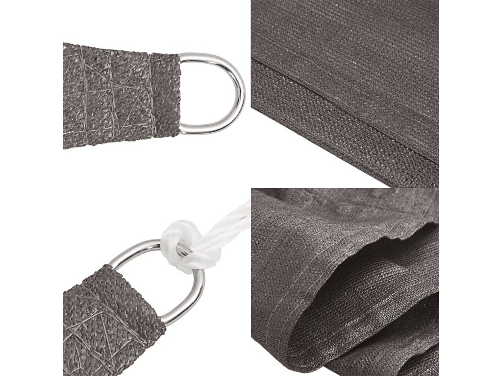 Sluneční plachta vyrobená ze 100% HDPE (vysokohustotní polyethylen) vás chrání před přímým slunečním zářením, umožňuje dostatečný průchod vzduchu a je propustná pro vodu. HDPE je speciálně upraven, takže je odolný proti plísním a UV záření. Slunečník se snadno sestavuje pomocí nerezových upevňovacích prvků na každém rohu a přiložených lanek.