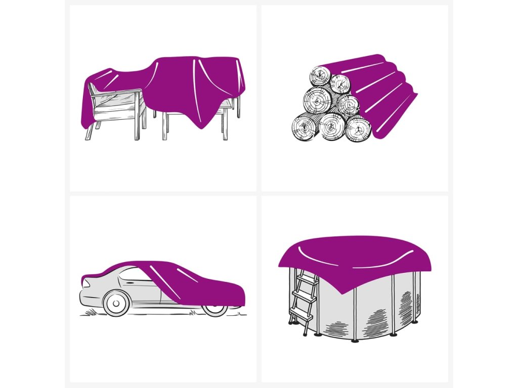 Tato všestranná, velmi odolná plachta je ideální k přikrývání zahradního nábytku, dřeva, přívěsů, automobilů, lodí, jízdních kol, pracovních prostor a stavebních materiálů a chrání je před nepříznivými povětrnostními podmínkami.