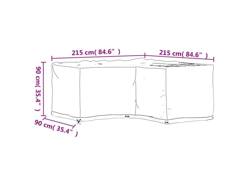 Plachty na zahradní nábytek tvar L 2 ks 16 oček 215x215x90 cm