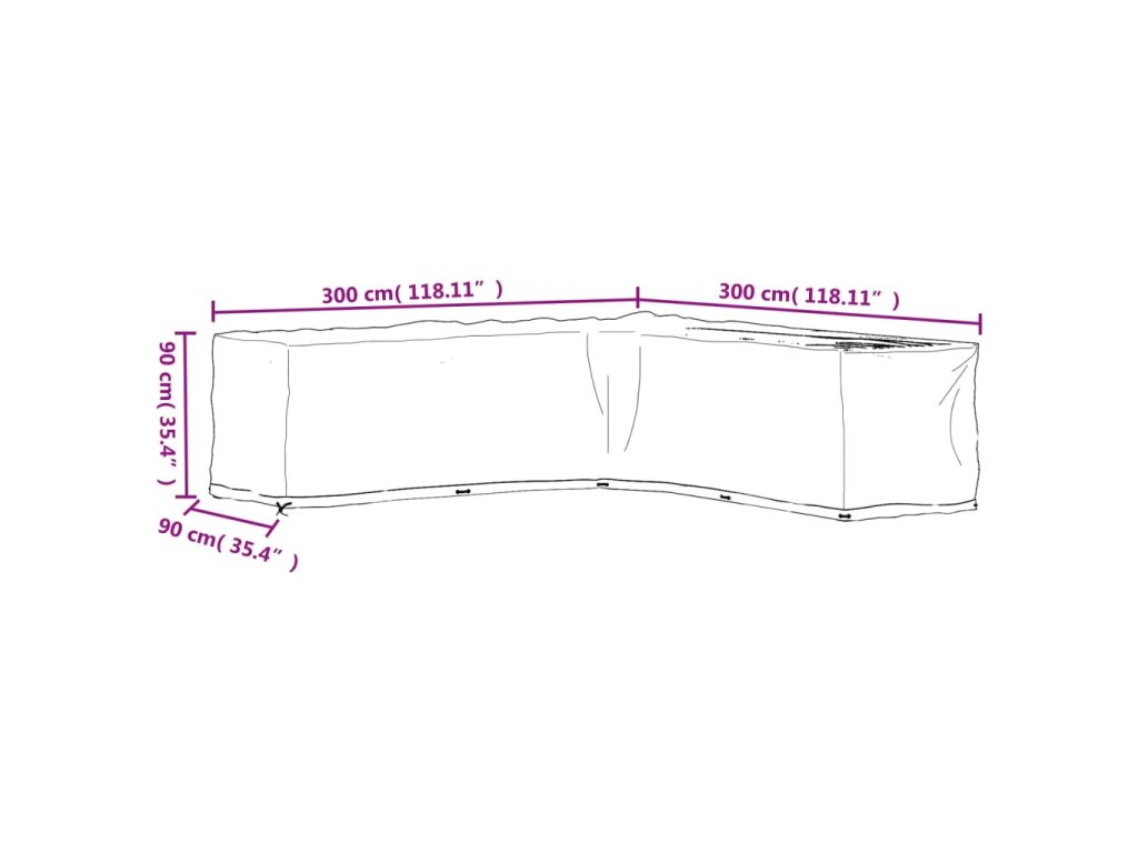 Plachty na zahradní nábytek tvar L 2 ks 20 oček 300x300x90 cm