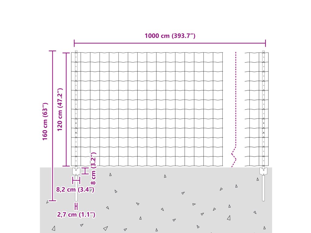 - Celkové rozměry: 1000 x 2,7 x 120 cm (D x Š x V)