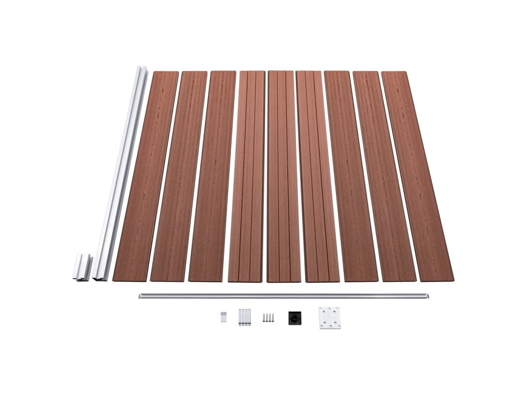 - Materiál: dřevoplast + hliníková lišta a sloupky
