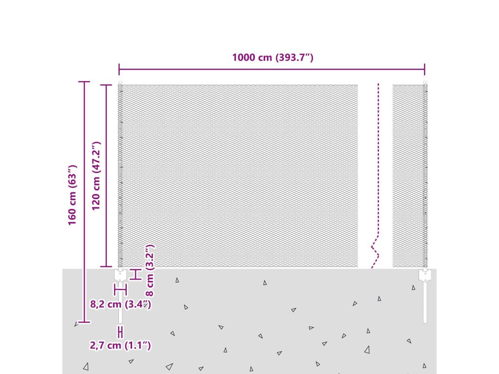 - Celkové rozměry: 1000 x 2,7 x 120 cm (D x Š x V)
