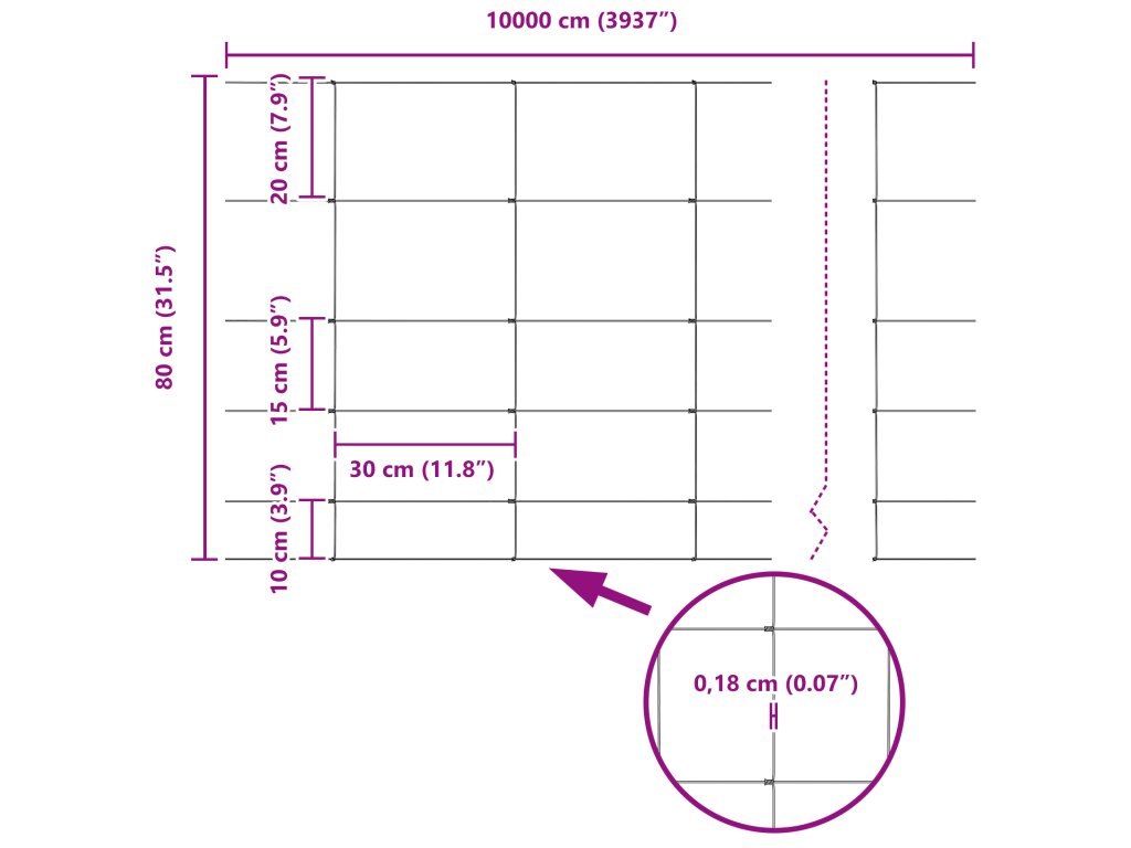 - Celkové rozměry: 10000,0 x 2,7 x 80 cm (D x Š x V)